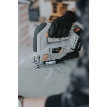 De 18V accu decoupeerzaag van Batavia werkt met het Maxxpack accuplatform. Zo heb je maar één accu nodig voor al je Batavia Maxxpack gereedschap.
