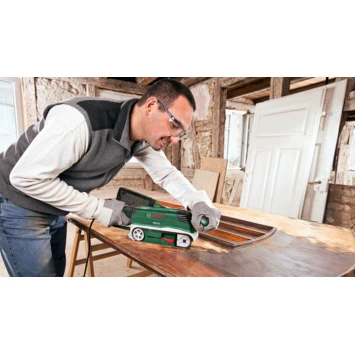 De Bosch Pbs 75 A is een bandschuurmachine van het merk Bosch. Deze krachtige en robuuste bandschuurmachine is uitermate geschikt voor het schuren van grote oppervlakten. De machine schuurt grote hoeveelheden materiaal af. Door het compacte design en de verbeterde ergonomie is de bandschuurmachine perfect te bedienen. De schuurband is bij eenvoudig te verwisselen. Verder bevat de schuurbandmachine een ingebouwd Bosch-microfiltersysteem met stofzuigerelement, waardoor stof direct wordt opgezogen. Daarom laat de Bandschuurmachine Bosch Pbs 75 A weinig rommel achter.