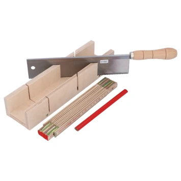 De GAMMA verstekbakset hout met toffelzaag, duimstok en potlood is een complete set voor het verstekzagen van onder andere plintjes en latjes. De set bestaat uit een houten verstekbak met een binnenmaat van 300 bij 50 millimeter en een toffelzaag, een duimstok van 200 cm en een timmermanspotlood. Met behulp van de verstekbakset kunnen lijsten, plinten, en profielen met een maximale breedte van 50 millimeter onder een hoek van 45 of 90 graden worden gezaagd. De toffelzaag is voorzien van een fijne vertanding, zodat de zaagsnede altijd strak en netjes is.