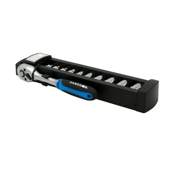 Deze HANDSON-doppenset bevat 10 dopsleutels van 1/4″, oftewel: met 6,3mm-verbinding. De dopsleutels hebben sleutelwijdtes van 5mm tot 14mm. De dopsleutelset bevat tevens een ratelsleutel van hoogwaardig chroom-vanadiumstaal die voorkomt dat de dopsleutel valt tijdens het los- of vastschroeven van moeren en bouten. Door de handige knop zijn de dopsleutels bovendien gemakkelijk te verwisselen. De doppenset met 10 dopsleutels van 1/4inch en verschillende afmetingen van 5mm tot 14mm wordt geleverd met handige cassette waarin u de dopsleutels uit de doppenset goed en overzichtelijk opbergt.