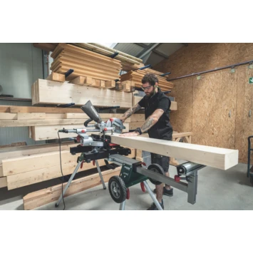 Met de Metabo KGS 216 M afkortzaag kun je nauwkeurig in hout, houtpanelen en MDF-platen zagen. De afkortzaag heeft een trekfunctie zodat je er ook dikkere en bredere balken tot maximaal 305mm breedte en 65mm hoogte mee kunt zagen. De zaag weegt slechts 14kg en heeft ergonomische draaggrepen. Dat maakt het eenvoudig om hem met één hand te vervoeren.