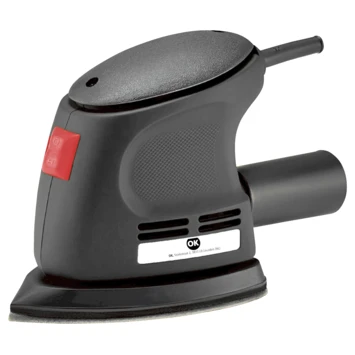 De OK handpalmschuurmachine is een praktisch en handig schuurtoestel. Bij aankoop ontvang je ook een vacuüm adapter en een 1 vel schuurpapier. De bevestiging aan de schuurzool (in een driehoekige vorm) gebeurt via klittenband. Met deze schuurmachine kun je aan de slag op de materialen kunststof en hout. Het maximaal aantal schuurbewegingen bedraagt 13.000 per minuut.