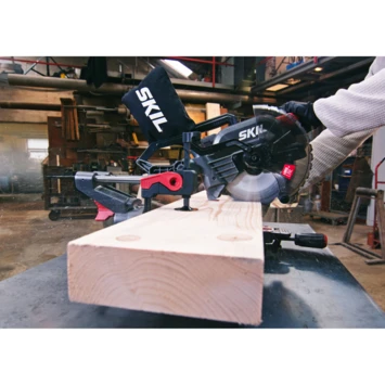 De „20V Max” SKIL 3590 telescopische accu-afkortzaag is uiterst compact en licht. Maar laat u niet misleiden door het formaat. Net als alle andere SKIL „20V Max” accugereedschappen wordt dit model aangedreven door de toonaangevende geavanceerde „PWRCORE 20™” accu- en opladertechnologie. Dit krachtige accusysteem, gecombineerd met een slimme „overslide”-functie, betekent dat dit gereedschap eenvoudig veeleisende zaagklussen kan aanpakken. Bij de meeste afkortzagen is de zaagkop aan de stangen bevestigd die bij het zagen aan de achterkant van het product uitsteken. De SKIL 3590 heeft echter stationaire stangen en een glijdende zaagkop, wat betekent dat de zaag dicht bij een muur kan worden geplaatst. Bevestiging van een werkstuk is een makkie met het unieke snelklemsysteem dat veel sneller is dan gebruikelijke klemsystemen. En de accurate laser geeft duidelijk de zaaglijn aan. Deze is gemakkelijk in te stellen, een groot pluspunt dat optimale nauwkeurigheid en flexibiliteit garandeert om de laserlijn aan de linker- of rechterkant van het zaagblad te projecteren. Zaaghoeken kunnen traploos worden ingesteld voor nauwkeurig schuin en verstek zagen en vooringestelde aanslagen garanderen een probleemloze instelling van de meest gebruikte hoeken. De tafelverlengstukken voor langere werkstukken kunnen helemaal worden ingeklapt en er is zelfs een extra handgreep voor gemakkelijk dragen. De SKIL 3590 wordt ook geleverd met een grote stofzak en geïntegreerde stofzuigeraansluiting in de aluminium beschermkap. De SKIL 3590 AA wordt geleverd met één 4,0Ah „KEEPCOOL™”-accu, een snellader, een 216 mm zaagblad met 40 hardmetalen tanden, tafelverlengstukken, een snelklem voor het werkstuk en een stofzak.