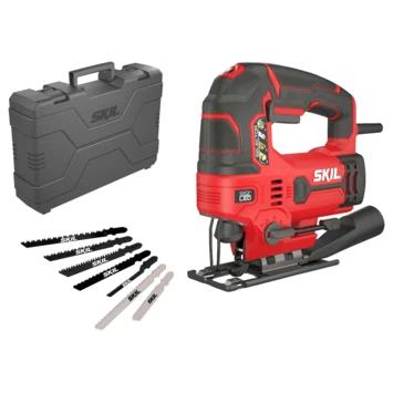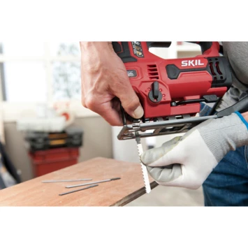 De SKIL 4531 decoupeerzaag is uitermate veelzijdig. Hij is geschikt voor zowel gebogen als rechte zaagsneden in talrijke materialen.. Deze krachtige 680W decoupeerzaag is voorzien van een unieke ‘180° LED’-lamp. Het zorgt voor de perfecte verlichting van de zaaglijn dankzij een brede lichtstraal, zonder daarbij schaduw te creëren! Dankzij de materiaalselector met vier instellingen kunt u altijd de juiste instelling voor de klus vinden. Met de variabele-snelheidsfunctie kunt u de snelheid van uw voorkeur vooraf instellen voor optimale resultaten. Met het gereedschapsloze ‘Clic’-systeem kunnen zaagbladen eenvoudig gewisseld worden zonder dat u gereedschap nodig hebt. Andere handige kenmerken van dit gereedschap zijn o.a. de stofblazer die een duidelijk zicht op uw werkstuk geeft en de grote schakelaar met vergrendelknop voor continu gebruik. Met de zonder sleutel verstelbare voetplaat kunnen verstekzaagsneden tot 45° worden gemaakt. Voor een schonere werkomgeving past de stofzuigeradapter op de meeste gangbare stofzuigers. Bovendien zorgt het ergonomische ontwerp met softgrip voor extra gebruikscomfort. De SKIL 4531 GA wordt geleverd in een stevige draagkoffer, inclusief 7 zaagbladen en een stofzuigeradapter.
