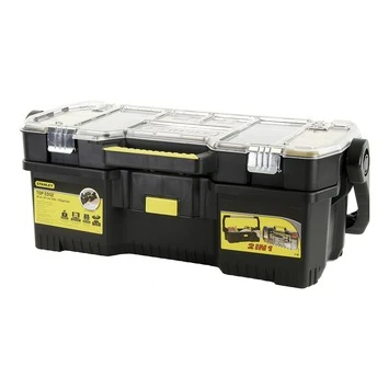 De Stanley gereedschapsbak met organizer 24″ is een praktische opberger voor al uw gereedschap en accessoires. De gereedschapskoffer is uitgerust met een handige drukknop waarmee u de organizer eenvoudig kunt ontgrendelen. Daarnaast is de organizer voorzien van een uitneembare verdeling voor het overzichtelijk opbergen van gereedschap en kleine onderdelen. De koffer heeft robuuste RVS sluitingen en een metalen, wegklapbare handgreep over de volle lengte. Zo blijven uw spullen goed op hun plek, ook wanneer u ze transporteert. De koffer is te combineren met gereedschapswagen 1-79-206.