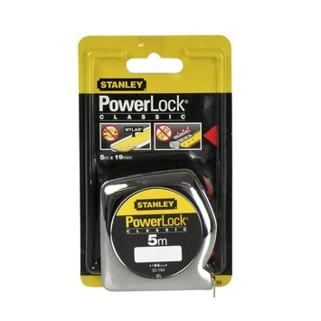De Stanley PowerLock rolbandmaat 500mm (0-33-194) is handig voor het snel en nauwkeurig opmeten van binnen- en buitenmaten. De rolbandmaat is 5m lang en 19mm breed. Het schuifhaakje met de werkelijke nulstand zorgt ervoor dat u op de millimeter precies kunt aftekenen. De band is voorzien van een Mylar-deklaag voor 10x meer bescherming tegen slijtage dan traditionele meetbanden. Het haakje is met drie klinknagels bevestigd op een metalen plaatje en zal dus niet snel afbreken. De bandblokkeerknop en broekklem zorgen voor gemakkelijk gebruik van deze rolbandmaat. Het huis van de rolbandmaat is van verchroomd schokvast ABS.