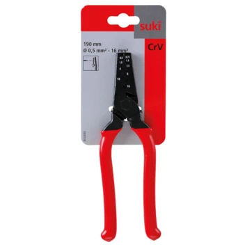 Met deze suki adereindhulstang, ook wel perstang of krimptang genaamd, breng je een adereindhuls aan op het afgestripte uiteinde van een installatie- of machinekabel. Hierdoor is de kabelkern solide afgewerkt om degelijk aangesloten te kunnen worden op een installatie of machine.